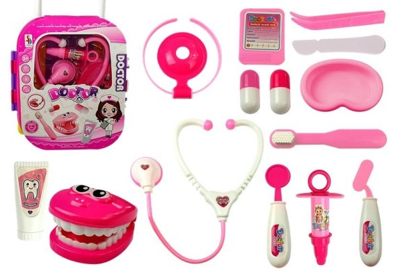 Są dzieci, które już od najmłodszych lat wiedzą, co chcą robić. Jeśli Twoje dziecko leczy wszystkie zabawki i twierdzi, że chce zostać lekarzem, wyposaż je w tę Walizkę Małego Dentysty. Jej bogate, wieloczęściowe wyposażenie i estetycznie wykonane przyrządy lekarskie pobudzą wyobraźnię dziecka i pozwolą mu połączyć fantastyczną zabawę z nauką i rozwojem własnych pasji. Starannie zrobione imitacje prawdziwych narzędzi lekarskich ucieszą dziecko. Wplatanie takich zestawów do zabaw jest również świetną metodą pozwalającą w prosty sposób wytłumaczyć dziecku, że wizyta u lekarza to nic strasznego. Ogromną zaletą zestawu jest jego uniwersalizm. Zabawka może stanowić zarówno walizkę, którą dziecko niesie w rączce jak i w pojazd na kółkach. Zestaw wykonany w kolorze białym.