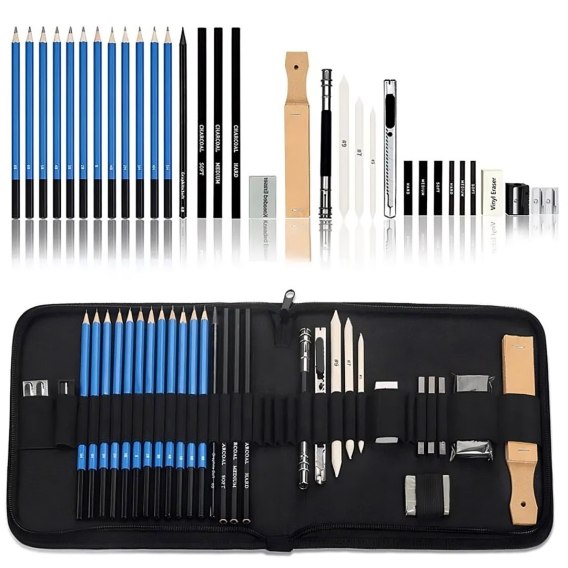 Zestaw artystyczny ołówków przyborów do szkicowania rysowania w etui - 32 el.