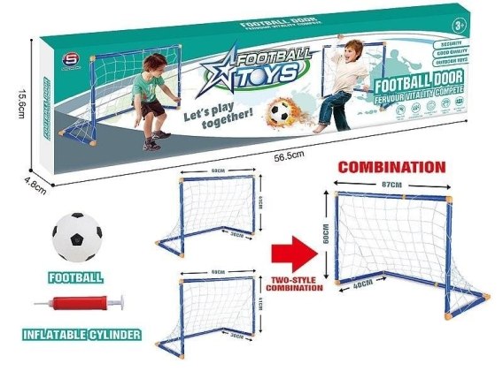 Zestaw do gry w piłkę nożną, 2 rozkładane bramki 87x60x40cm, piłka z pompką; 57x16x5cm, Box