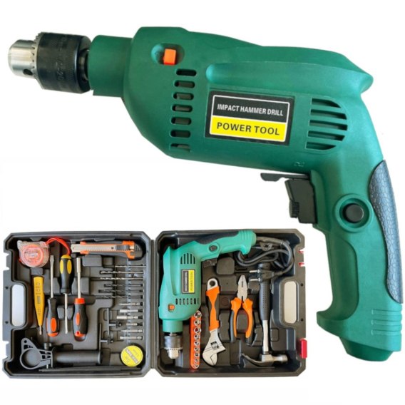 Zestaw narzędzi z wiertarką udarową młotek kombinerki wiertła 550 W - 37 el.