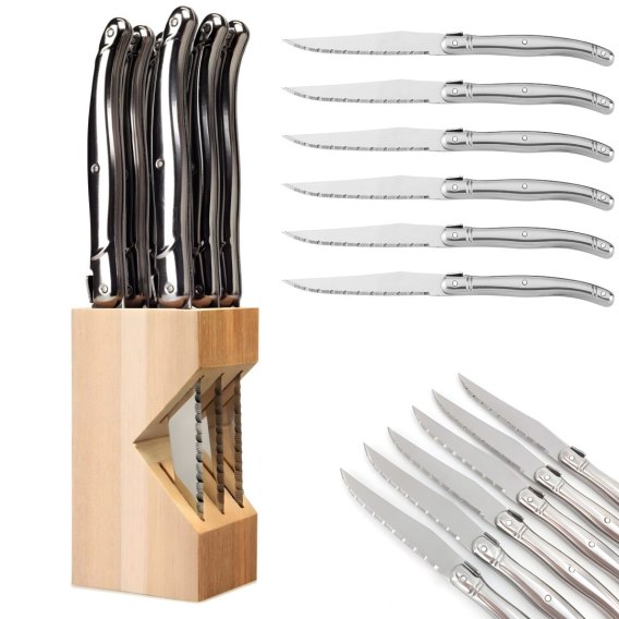 Zestaw noży kuchennych ząbkowanych do steków grilla BBQ w bloku - 6 el.