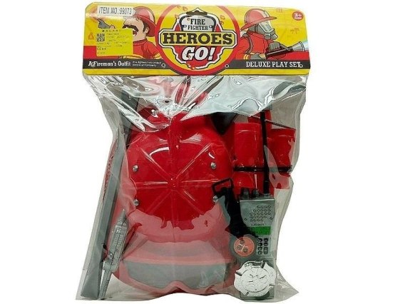 zestaw strażaka z hełmem i maską; 41x31,5x10cm, PVC