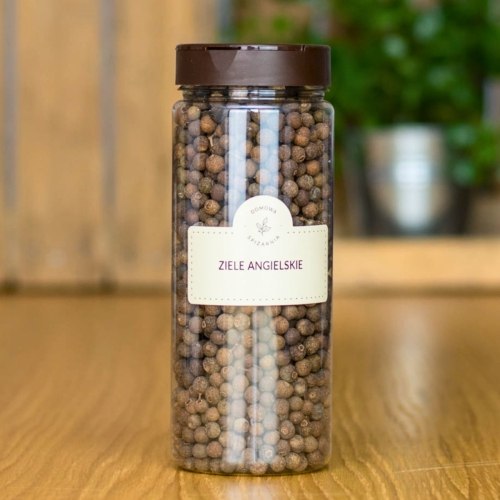 Ziele angielskie rośnie wyłącznie na zachodniej półkuli naszego globu, pozyskiwane jest w lasach deszczowych z wiecznie zielonych drzew. Na pierwszy rzut oka łatwo można pomylić jagody ziela angielskiego z pieprzem. Legendy głoszą, że Krzysztof Kolumb odkrył ziele angielskie na Karaibach, podczas gdy szukał pieprzu. Ta wyjątkowo aromatyczna przyprawa smakuje jak połączenie gałki muszkatołowej, cynamonu, imbiru, goździków, nutę jałowca i pieprzu. Posiada również wiele właściwości prozdrowotnych. Właściwości ziela angielskiego: poprawia trawienie, ma właściwości wiatropędne, spożywane w zbyt dużej ilości może negatywnie wpływać na układ pokarmowy, popularny składnik okładów na bóle stawowe i mięśniowe, ma właściwości rozgrzewające, pomaga w przyswajaniu witaminy B oraz selenu. Możliwości zastosowania ziarnistego ziela angielskiego: używa się go do przygotowywania wędlin i konserw, doskonały składnik marynat, bardzo popularny składnik zup, możemy go również wyczuć w niektórych słodkich wypiekach szczypta zmielonego ziarenka podnosi walory smakowe sałatek, przetworów i kompotów, jest głównym składnikiem sosu bbq stosuje się do produkcji nalewek oraz likierów. Ciekawostki: Ziele angielskie może być stosowane jako substytut, cynamonu, goździków lub gałki muszkatołowej.